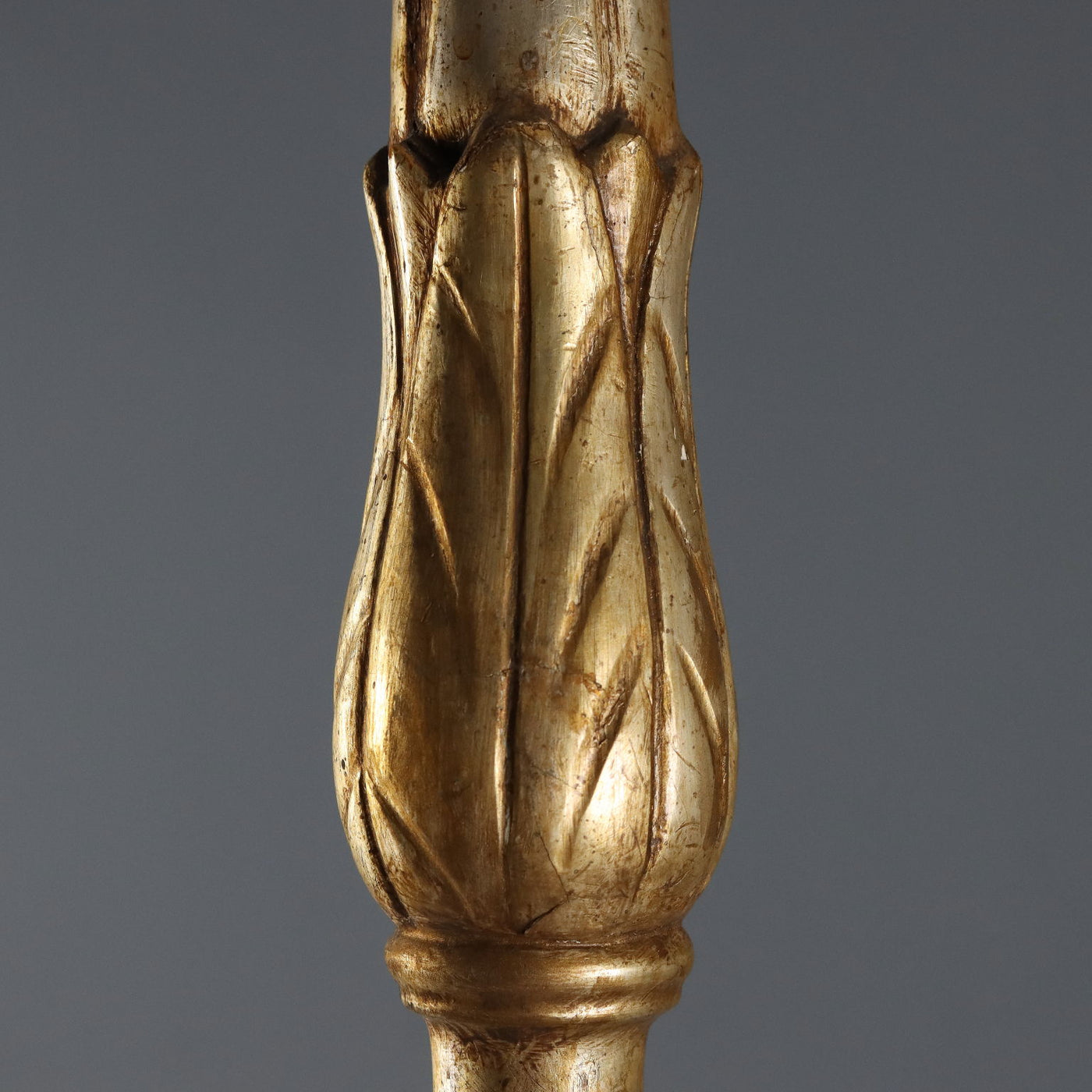 Carved and gilded wooden torch holder with acanthus leaf decorations. Visible signs of posthumous gilding. Ancient objects, , collector's articles, candle-holder.