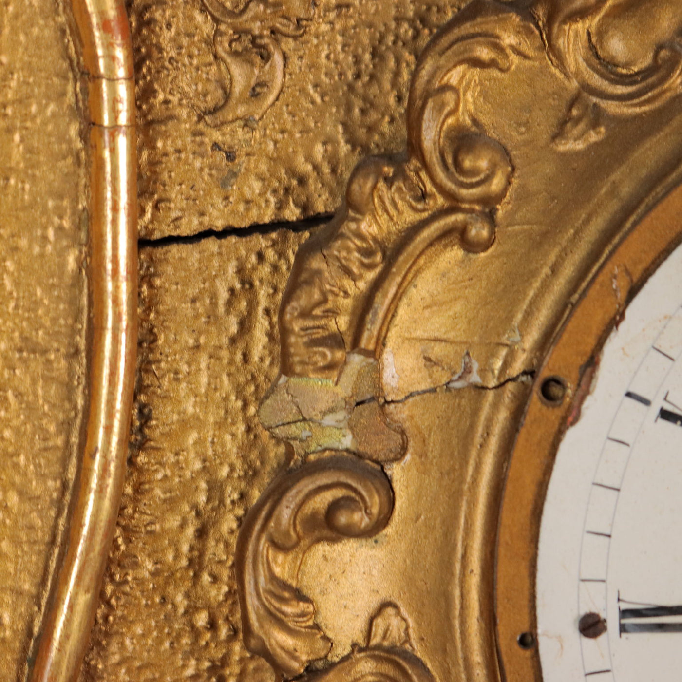 Antique Wall Clock Pendulum Wood Pastiglia XIX Century