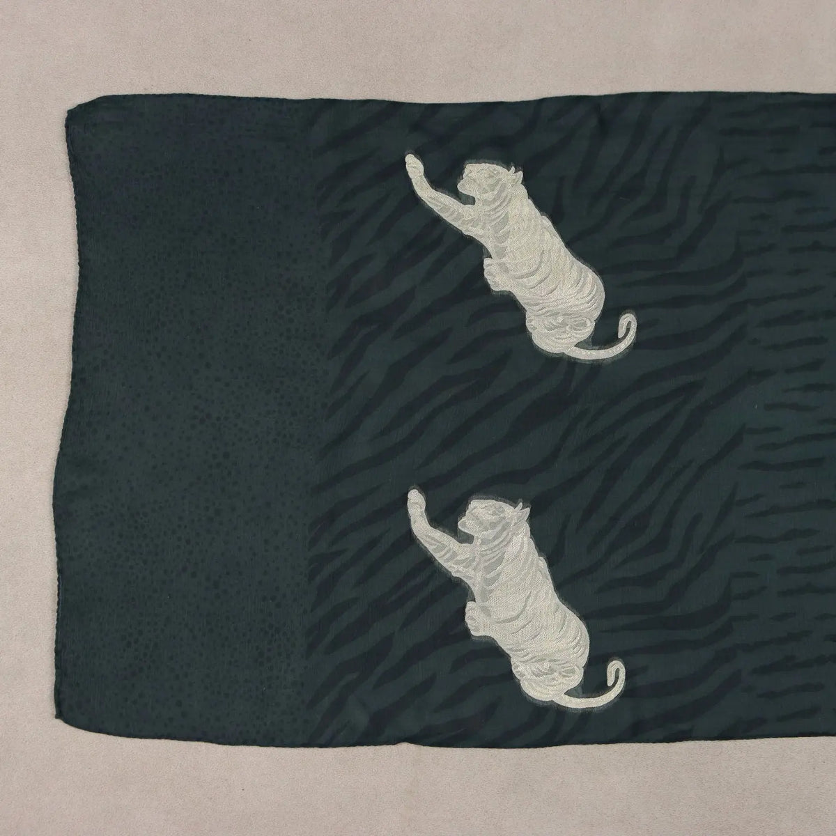 Vintage Krizia Scarf Black Silk Tigers Italy 1980s