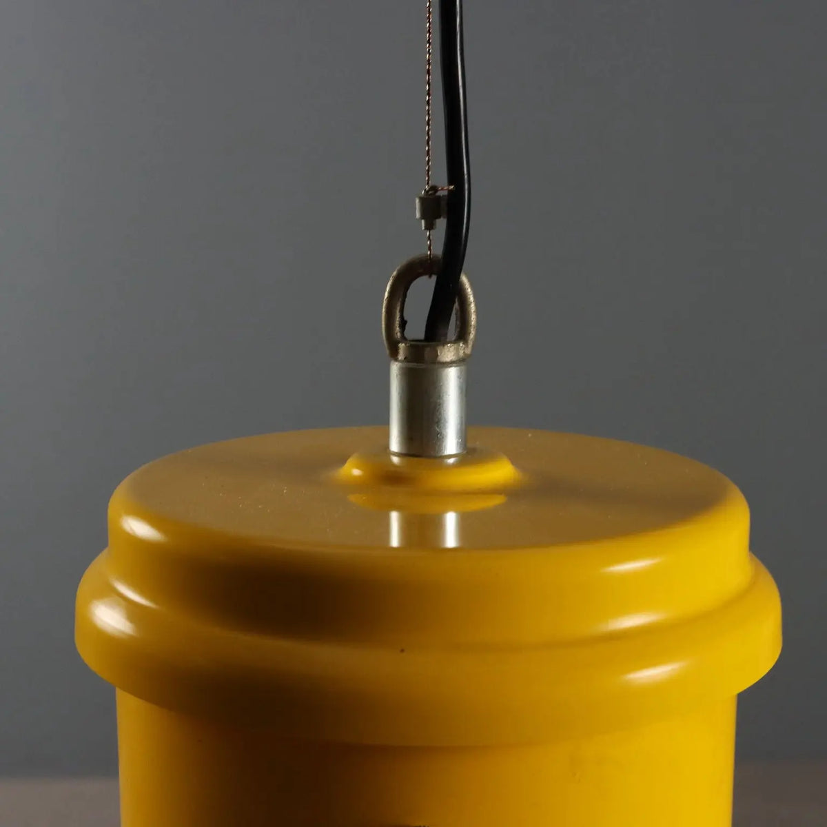 Vintage industrial-style ceiling lamp in yellow lacquered metal. Good condition.